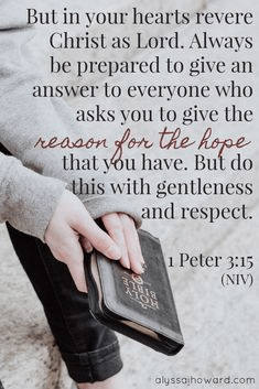 But in your hearts reverence Christ as Lord. Always be prepared to make a defense to any one who calls you to account for the hope that is in you, yet do it with gentleness and reverence; (1 Peter 3:15)